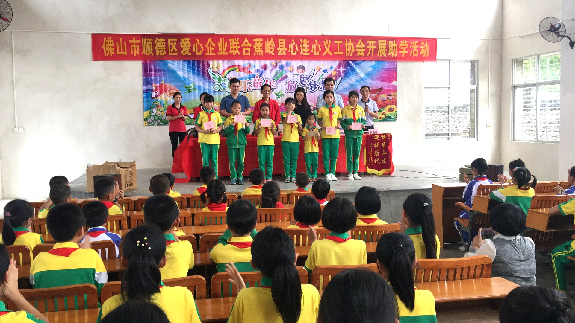 5月24日,九極公司與七家愛心企業(yè),聯(lián)合梅州市蕉嶺縣心連心義工協(xié)會,對蕉嶺縣的藍坊鎮(zhèn)高思小學和長潭鎮(zhèn)